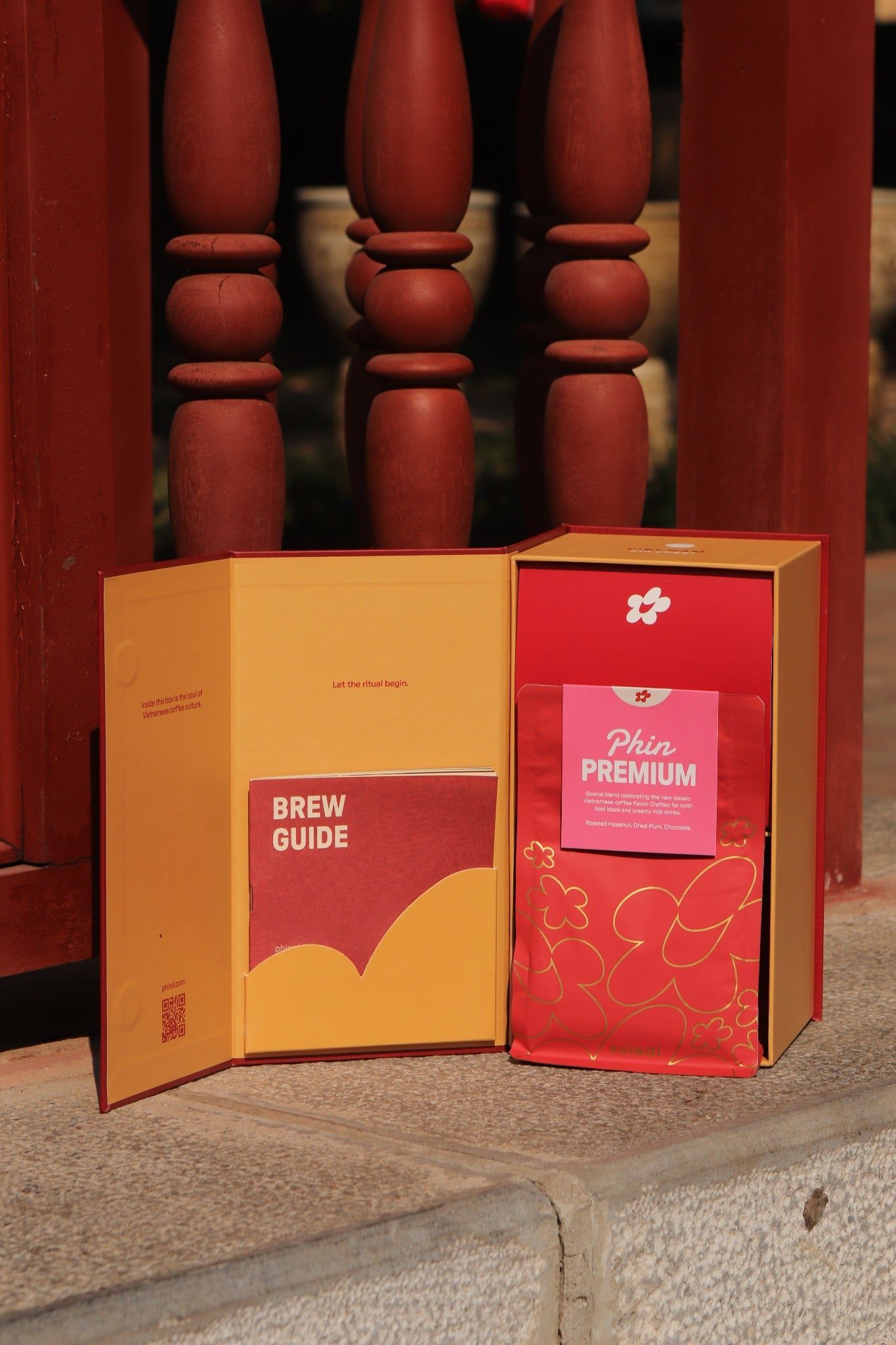 Và ngay trong hộp quà ấy là gói cà phê Phin Premium, được phối trộn dành riêng cho PHINƠI và thiết kế để pha Phin. Cà phê được rang chậm, kết hợp giữa Fine Robusta và Specialty Grade Arabica, mang đến hương sô cô la đen, hạt phỉ nướng xen lẫn chút trái cây khô nhẹ nhàng. Một hương vị dễ uống, phù hợp với nhiều khẩu vị trong gia đình, để ai cũng có thể tự tay pha cho mình một ly cà phê tròn vị trong những ngày đầu năm.