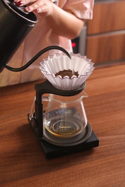 Với Hario V60, dòng nước thoáng và nhanh giúp cà phê được chiết xuất nhẹ, trong trẻo và rõ ràng. Ly cà phê thường sáng vị, có độ chua thanh, cảm giác sạch và khô nhẹ ở hậu vị — một kiểu ly cà phê phù hợp cho những ai thích sự tinh tế, clarity cao và mùi hương tự nhiên nổi bật.