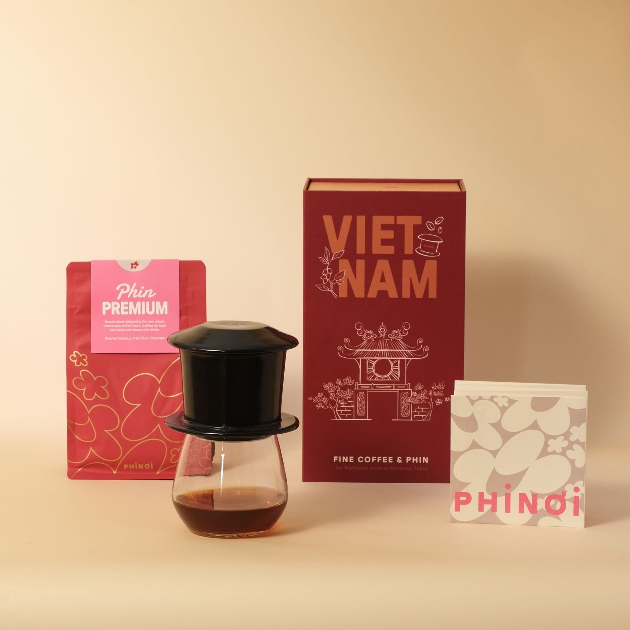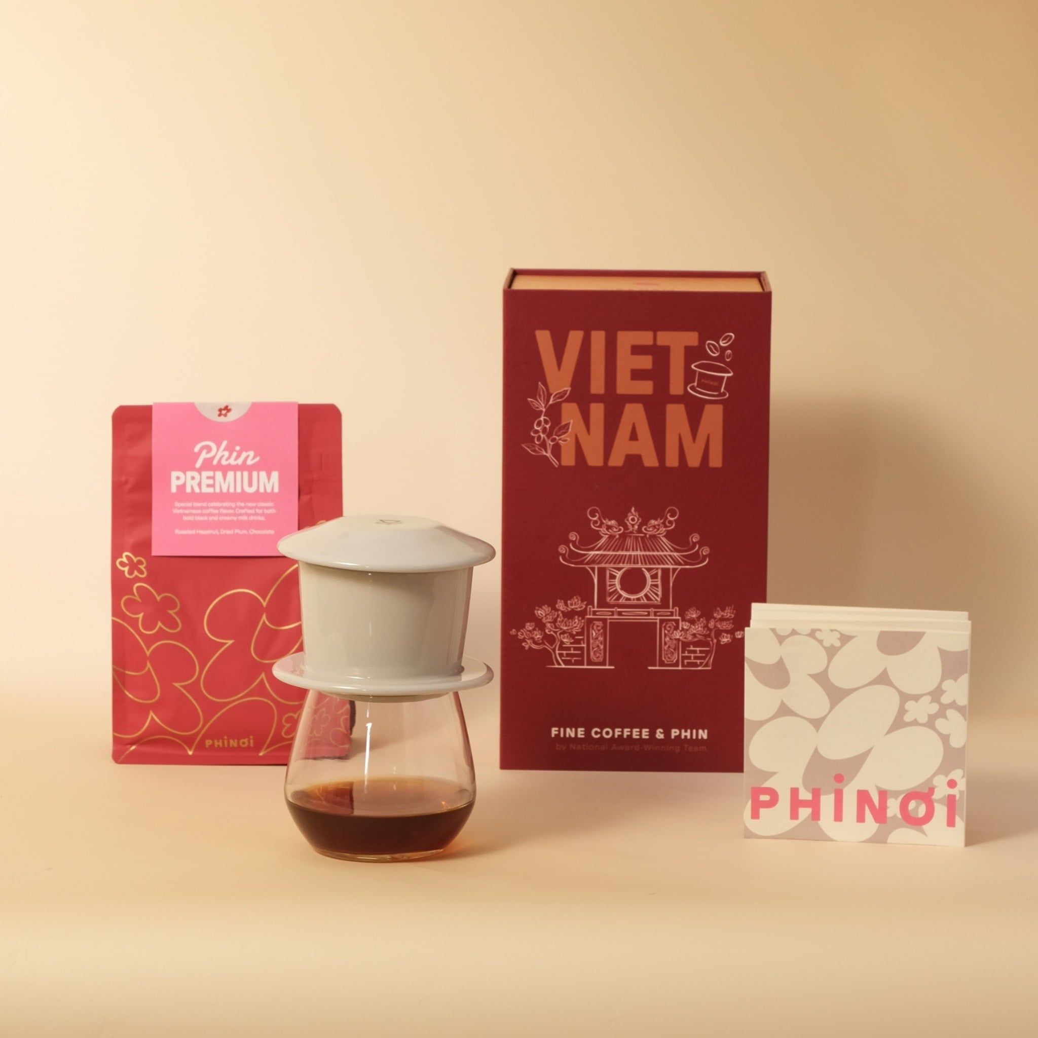 Trọn bộ cà phê Việt Nam hiện đại, được chuẩn bị sẵn sàng để trở thành món quà thật chỉn chu và ý nghĩa. Trong hộp quà PHINƠI là chiếc Phin Gốm PHINƠI đi kèm là gói cà phê đặc sản, phối trộn riêng từ hạt Fine Robusta và Fine Arabica. Đây là món quà mang tinh thần Việt – nơi cà phê đặc sản gặp nghệ thuật gốm Bát Tràng, tạo nên sự giao thoa giữa hai dòng chảy văn hoá: chậm rãi, bền bỉ và tinh tế.